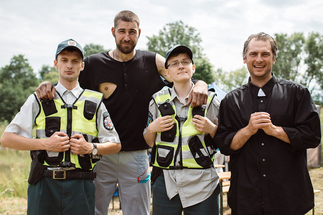 Apie didžiausius iššukius vaidinant kunigą-nusidėjėlį, Mantas Vaitiekūnas pripažino, kad tai buvo kontraversiškiausias jo kurtas personažas kine. „Esu religingas, todėl vaidinau su didžiule sielograuža kaskart pasielgus ar pasakius kažką negražaus. Tačiau įkvėpimo vaidmeniui toli ieškoti nereikėjo. Esu matęs tokių kunigų ne vieną ir ne du. Vienas girtas krikštijo pusbrolio vaikus, kitas girtas sėdo prie vairo. Būtent tai ir leisdavo nusiraminti širdžiai“, – pasakojo M. Vaitiekūnas. Pusiau juokais, pusiau rimtai aktorius pridūrė, kad visgi didžiausi iššūkiai filmuojantis – atsispirti Inetos Stasiulytės vaidinamai seksualiai pareigūnei Livai Pusvaškei ir vaidinti su spaudžiančiomis kelnėmis. Kelnių problemą teko spręsti prasisegant kelnių užtrauktuką ir slepiant jį po juodais marškiniais.