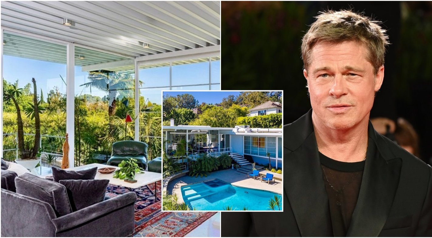 Dvejus metus B. Pitto namais buvęs pastatas turi tris miegamuosius, dvi vonios kambarius, sauną, erdvų baseiną bei saulės baterijas.
