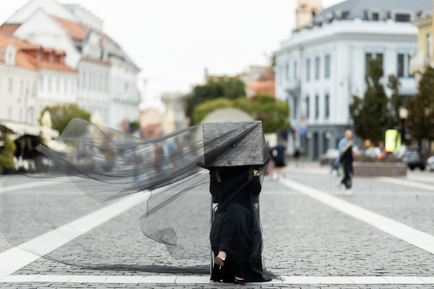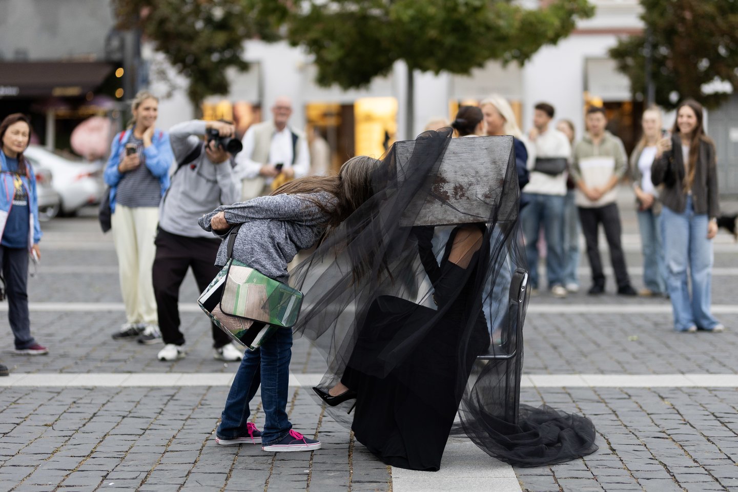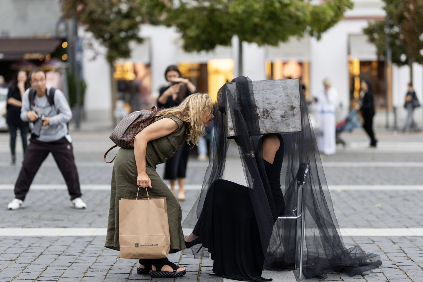 Menininkė Monika Dirsytė pristatė performansą „Kalta“, vykusį priešais Portalą.