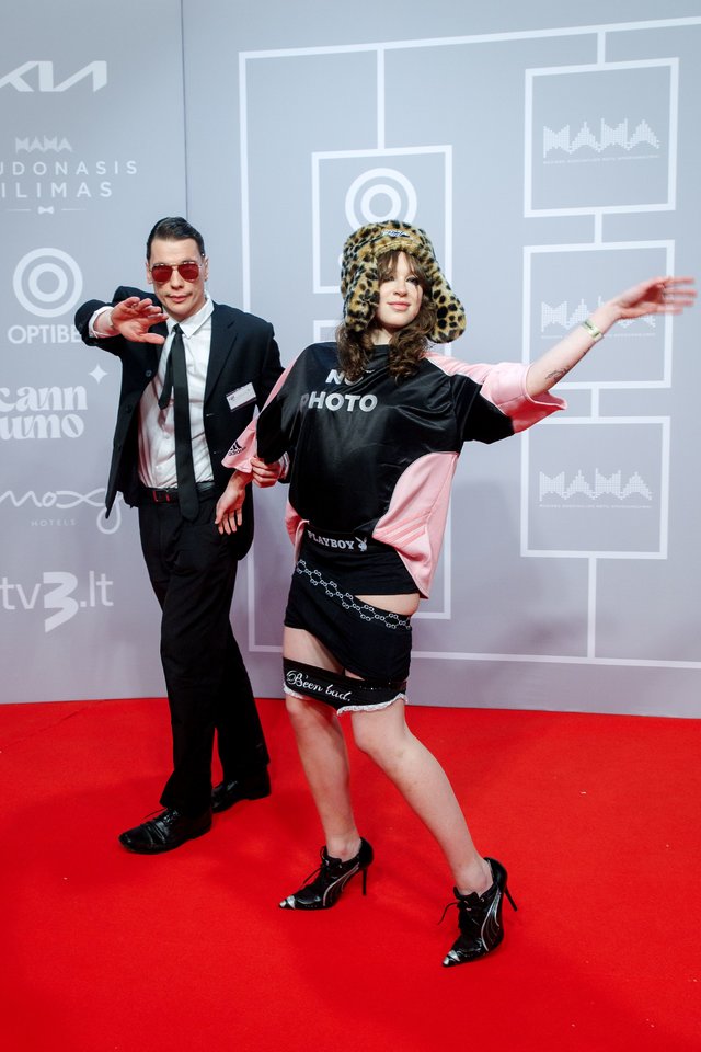 Mergina vilkėjo sportinius „Adidas“ marškinėlius su užrašu „No photos“, kuris puikiai atitiko jos unikalų stilių ir požiūrį į viešumą. Tačiau ne tik marškiniai tapo svarbia detalė. Ugnė buvo pasipuošusi ir netikro kailio kepure, o žvelgiant žemyn, akivaizdu, kad ji dėvėjo trejas kelnaites. Įdomu tai, kad vienas iš jų buvo laikomas rankose, o netrukus, žengdama raudonuoju kilimu, dj nevykele „netyčia“ pametė dar vieną.
