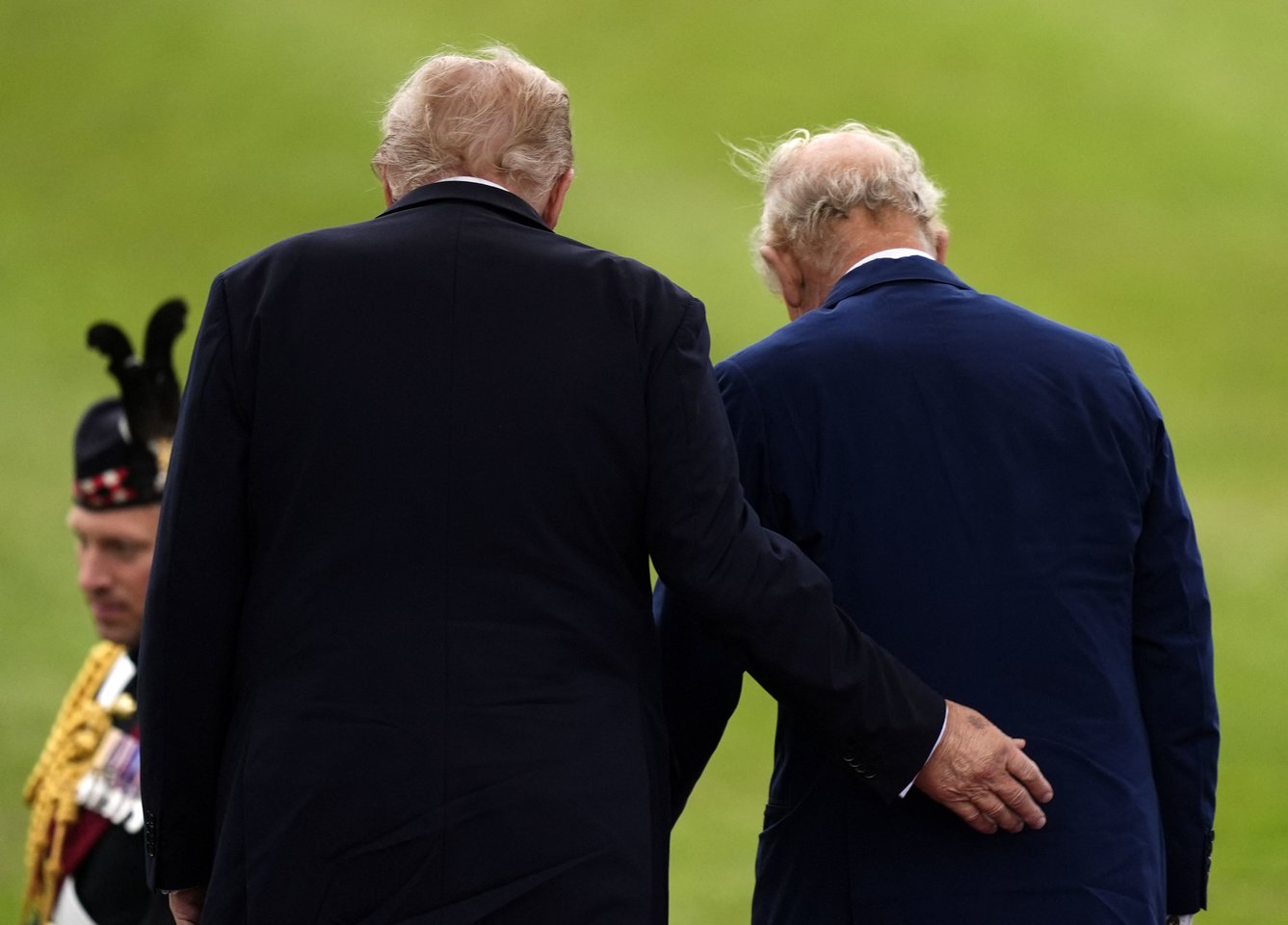 Trumpas vėl nesilaikė priimtų papročių ir elgėsi pernelyg familiariai – po rankos paspaudimo jis kelis kartus lietė karalių Karolį bei princą Viljamą.