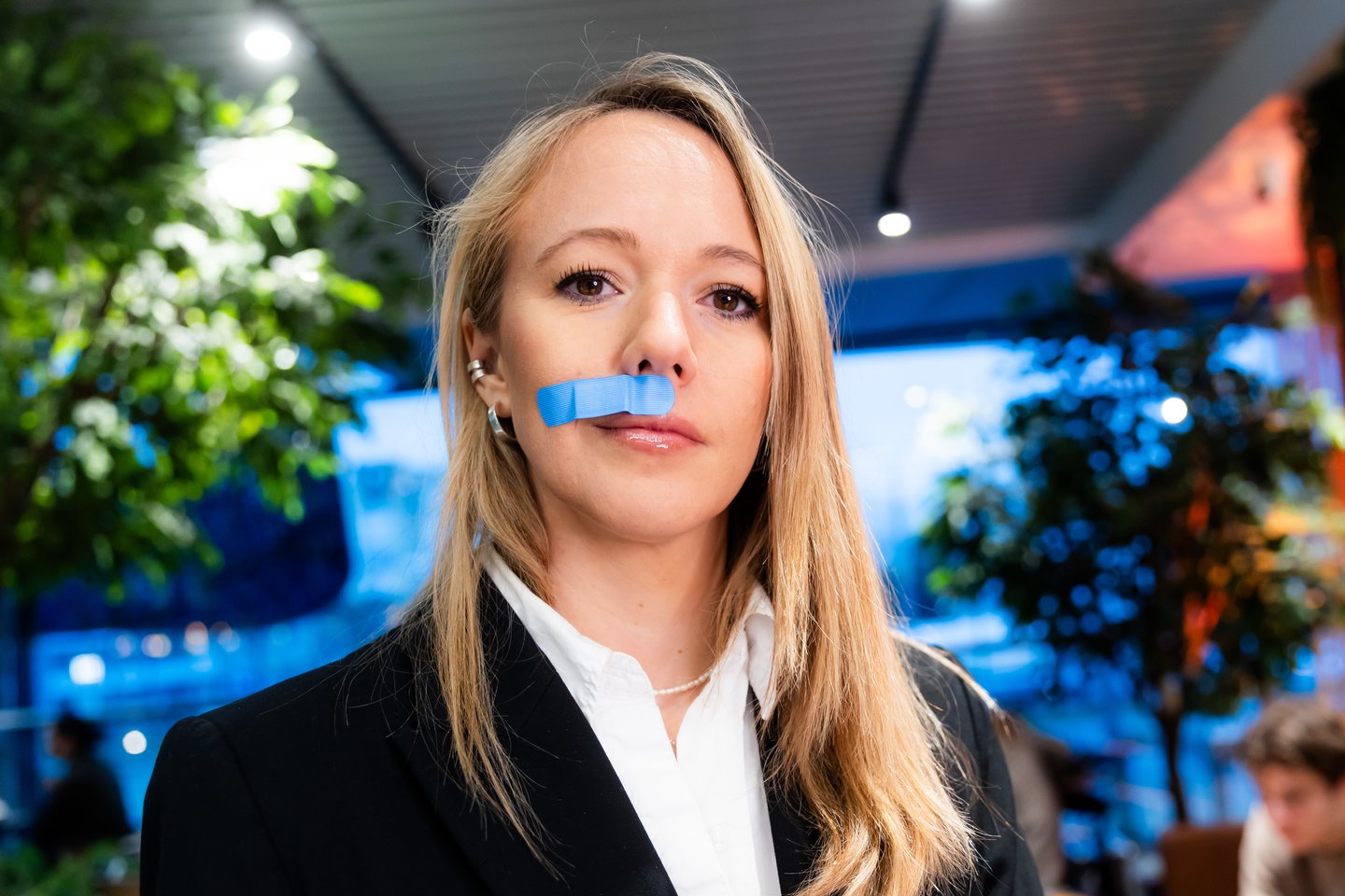 Mėlynais pleistrais veidus klijavo ir žinomi pusryčiuose susirinkę žmonės: