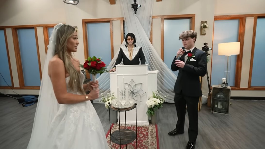Tuo metu YouTuberis vidury ceremonijos išsitraukė tariamą priešsantuokinę sutartį ir garsiai perskaitė sąlygas, kurios buvo aiškiai žeminančios.