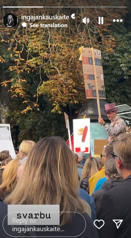 Proteste dalyvavo garsi dainininkė Inga Jankauskaitė. Prie įrašo iš protesto ji trumpai parašė: „SVARBU“.