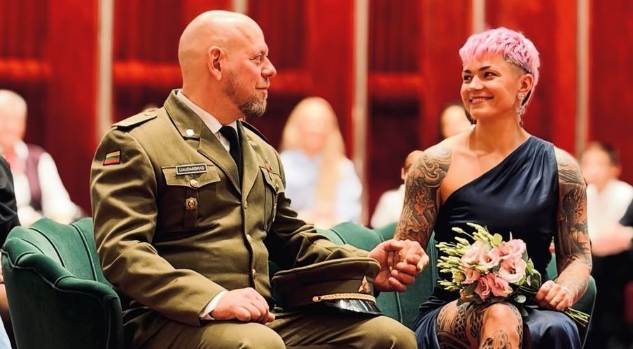 Jie taip pat paviešino keletą nuotraukų iš vestuvių ceremonijos Vilniaus civilinės metrikacijos skyriuje. Viename iš kadrų – ir jaunavedžių bučinys.
