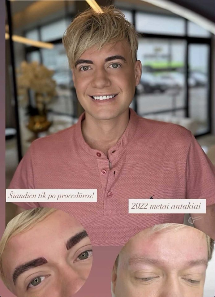 „Buvau be antakių – labai šviesūs ir be formos, atrodė, kad visai neturiu antakių. Mano gera bičiulė, žinojusi mano problemą, Gitana Vizgaitienė, pakvietė pas save į mikro pigmentacijos centrą ir padarė ilgalaikį antakių plaukelių makiažą“, – apie savo sprendimą kalbėjo jis.
