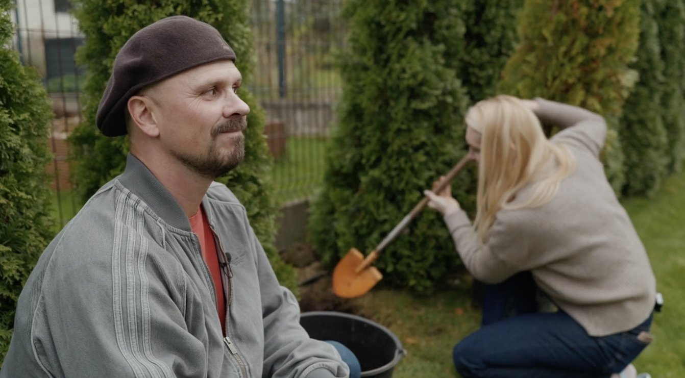 Vis pakomentuodama, kaip A. Bružas kasa naujosios tujos duobę, dainininkė pripažino, kad jai stovėti šalia ir nieko nedaryti yra kančia. Tad jie vėl apsikeitė vietomis.