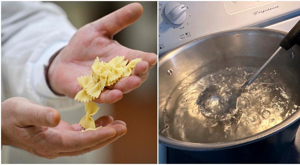 Taip, teisingai. Jos partneris makaronus tiesiog įdėjo į virdulį, užpylė vandeniu ir įjungė virimą. Įprastas makaronų gaminimo būdas būtų toks: į puodą supilti verdantį vandenį, užvirti, įdėti makaronus ir leisti jiems išvirti iki pageidaujamos konsistencijos.