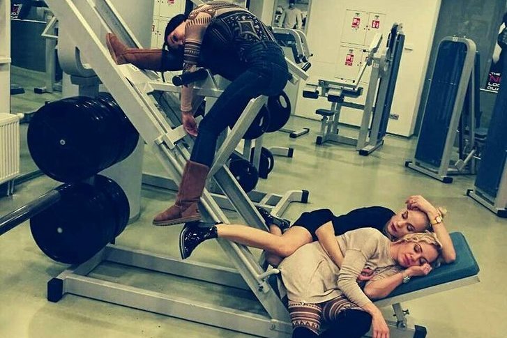 „Pažadas pradėti sportuoti įgyvendintas“, – sugulusios ant treniruoklių skelbė grupės merginos.