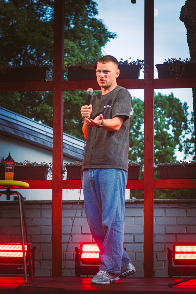 „Viskas įvyko neplanuotai. Tuo metu, kai tiesiog stebėjau komedijos pasirodymą, vedėjas pasiūlė užlipti ant scenos bet kam, kas nori. Mane paskatino Dovilė ir kiti draugai. Ir nors užlipau visai nesiruošęs, kažkaip sugebėjau prajuokinti publiką“, – prisimena jis.
