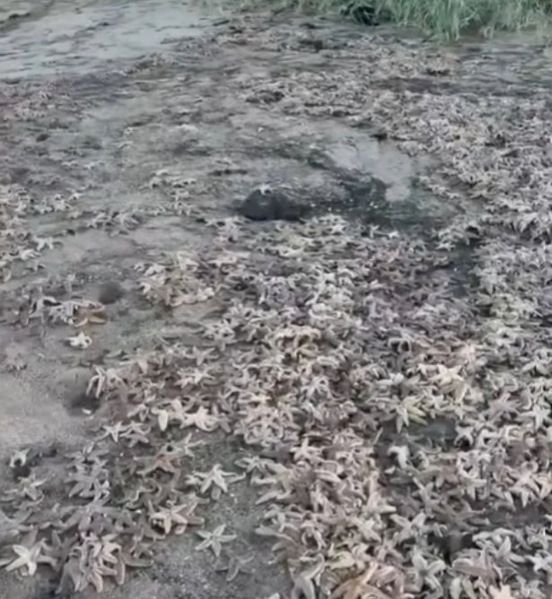Socialiniuose tinkluose pasidalytas Neil Jones vaizdo įrašas atskleidė ištisą pakrantę nusėtą mažaisiais gyviais. Vietos gyventojai šį reiškinį pavadino „jūros žvaigždžių apokalipse“. Kai kurios jų buvo išmestos net ant šaligatvio virš paplūdimio.