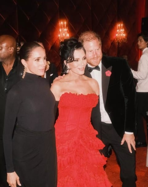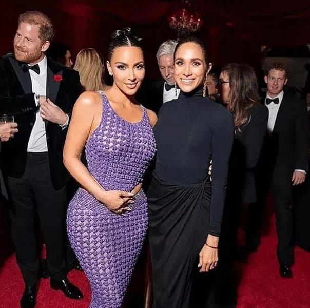 Nuotraukose, kurios, atrodo, dabar jau ištrintos, Meghan ir Harry pozavo kartu su Kim bei gimtadienio kaltininke Kris. Princas vilkėjo klasikinį kostiumą, atitinkantį „black tie“ aprangos kodą. O Meghan sužibėjo vilkėdama juodą, aukštu kaklu suknelę su skeltuku iki šlaunies.