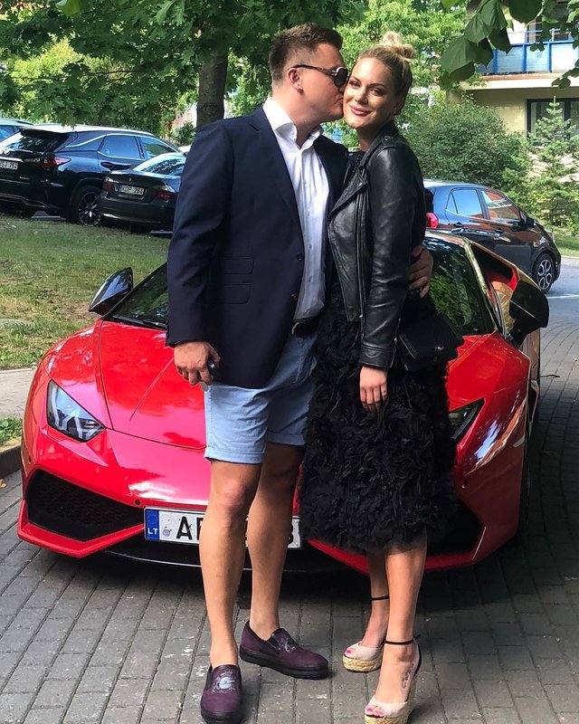 Nuotraukoje jis bučiavo E. Malinauskaitę į skruostą, už jų nugaros – garsusis Pauliaus „Lamborghini“ su vardiniais numeriais „ARSA 23“.