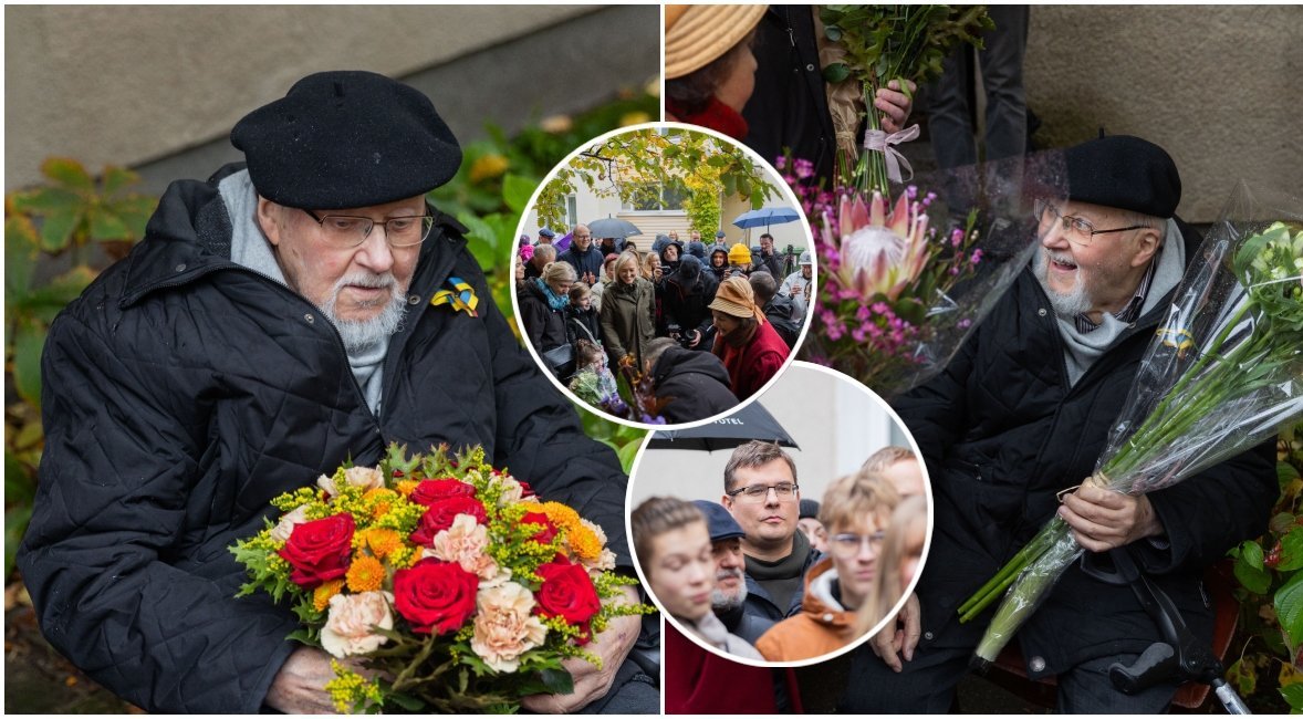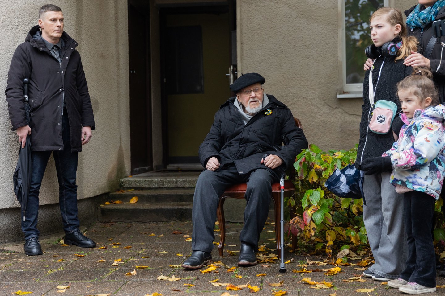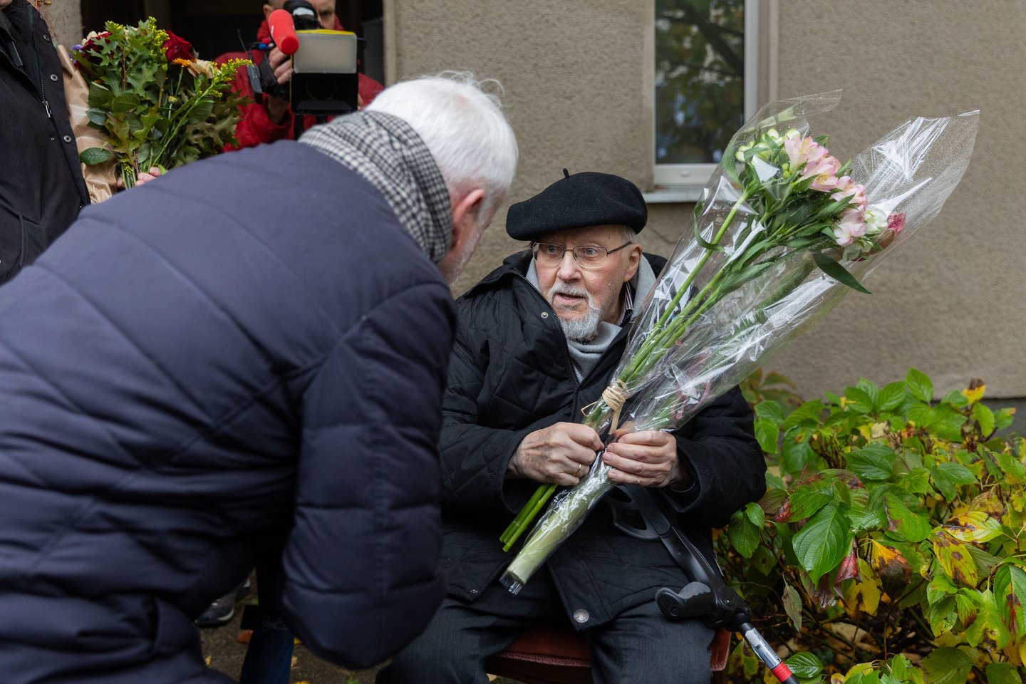 V. Landsbergį su žmonėmis, atvykusiais jo pasveikinti, užfiksavo BNS fotografai.