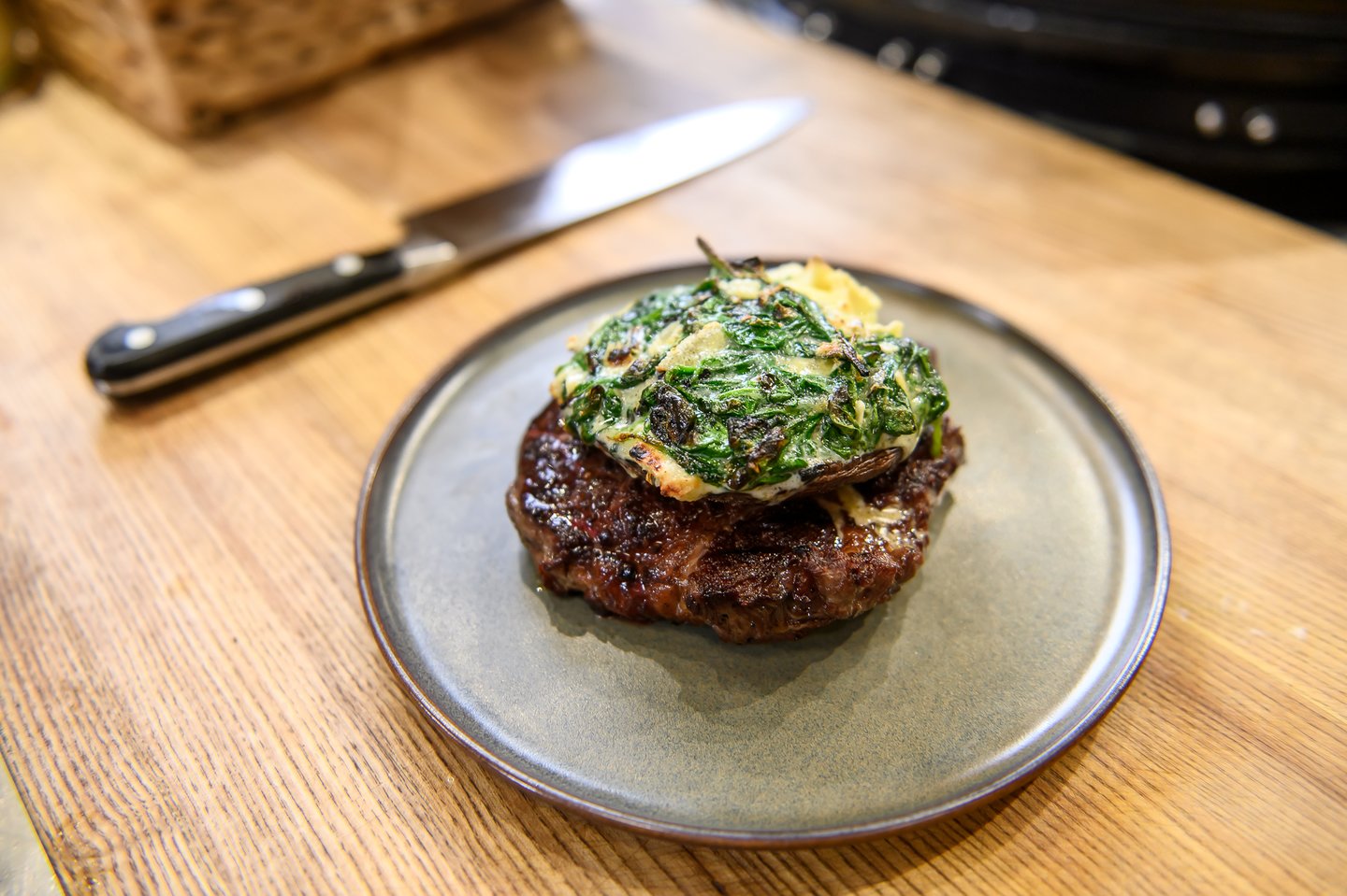 Šį kartą jis visus nustebins jautienos kepsniu su portobello grybu, įdarytu cambozola sūriu ir špinatais!