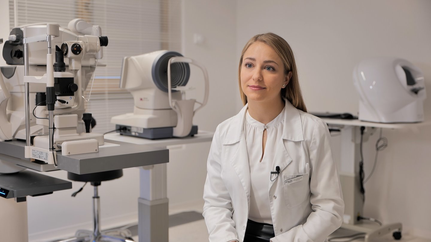„Labai svarbu pacientą detaliai apžiūrėti pasitelkiant plyšinę lempą. Taip pat tyrimams naudojame ir kitą būdą. Tikriname, kaip greitai suskyla ašarų plėvelė“, – pasakojo specialistė.