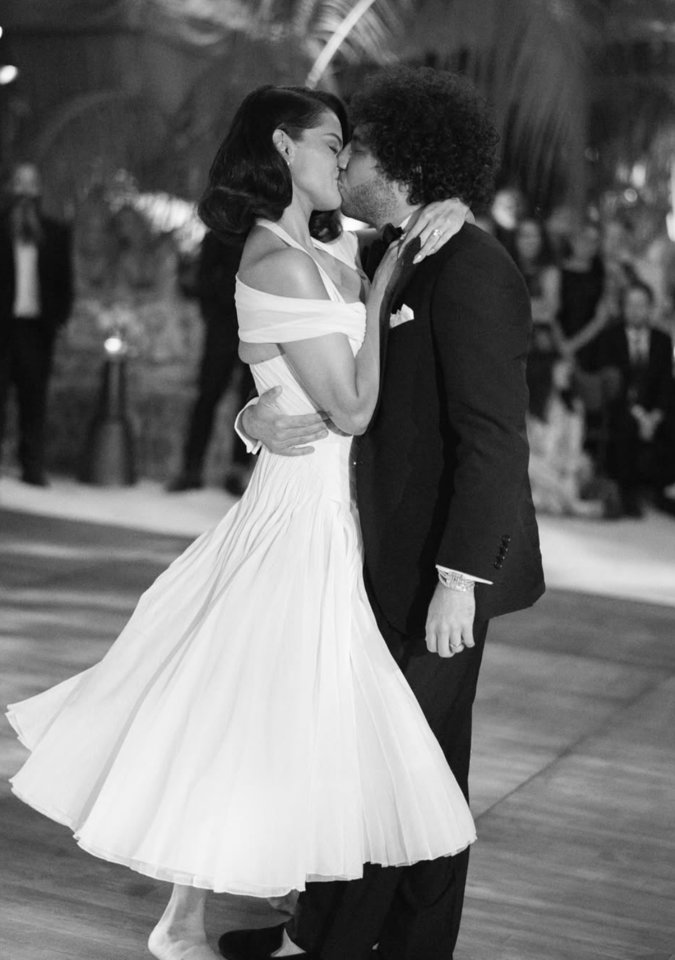Ralph Lauren sukūrė specialiai Selenai skirtą suknelę, kurią Gomez vilkėjo vakaro eigoje. Elegantiškos detalės – iškirptė, priglundantis siluetas ir platėjantis sijonas – puikiai tiko šokių nakčiai su vyru Benny Blanco.