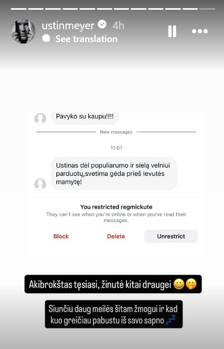 „Moteris jau tris metus mane atakuoja žinutėmis. Nors ir esu užblokavęs, šiuo metu žinutes gauna mano draugai ir mano šeimos nariai.“