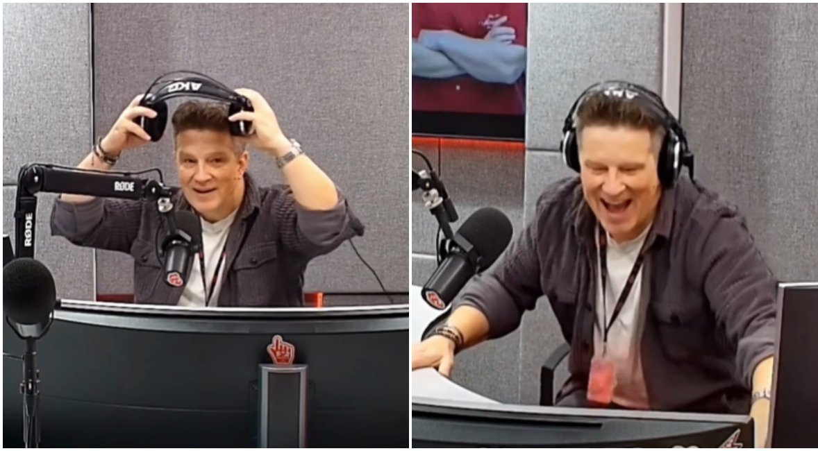 Iš pradžių laidos vedėjas atrodo suglumęs, net nusiima ausines paklausyti, iš kur sklinda šis garsas.