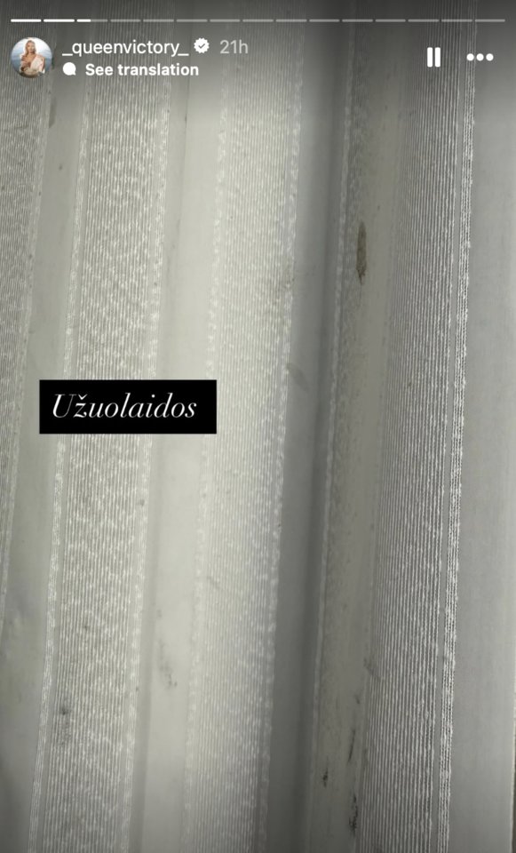 Viktorija taip pat pasidalino, jog vietoje gražaus horizonto per langą, matosi ir girdisi vykstančios statybos. Moteris pasidalino ir kambario užuolaidomis, kurios buvo purvinos.