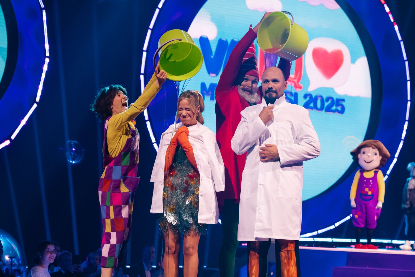 Paskelbus paskutinę nominaciją, Kakė Makė su draugu Netvarkos Nykštuku paruošė neeilinį pokštą: nusivedę vedėjus į šalį jie apipylė juos slime!