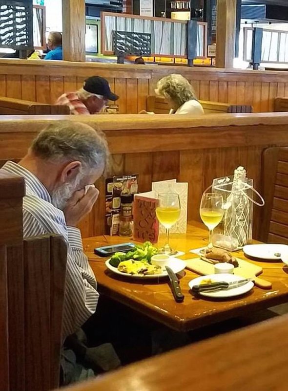 Chasidy Gwaltney, Corpus Christi Teksase, vasario 14 d. pietavo restorane, kuomet pastebėjo vyresnio amžiaus našlį, kuris pietavo drauge su savo mirusios žmonos pelenais.