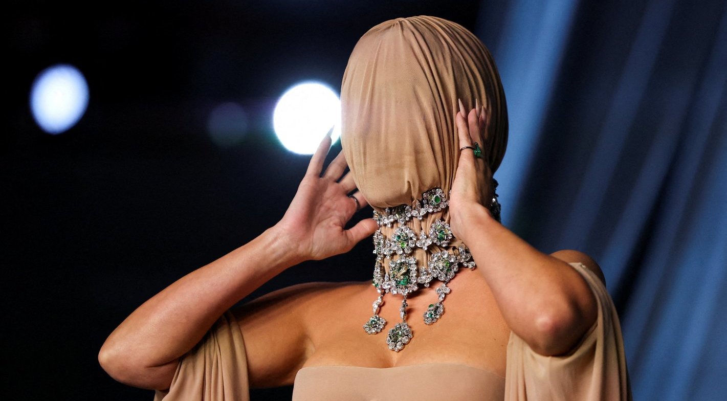 Kardashian įvaizdis „Academy Museum Gala“ renginyje priminė visą kūną dengiantį įvaizdį, kurį ji vilkėjo 2021 m. Met Gala – tada ji vilkėjo juodą kaukę, dengiančią veidą ir galvą, dalyvaudama „Balenciaga“ aprangoje.