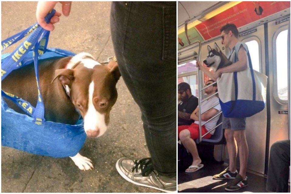 Viešajame transporte uždraudė vežtis šunis, nebent jie tilps į krepšį (nuotr. Twitter)