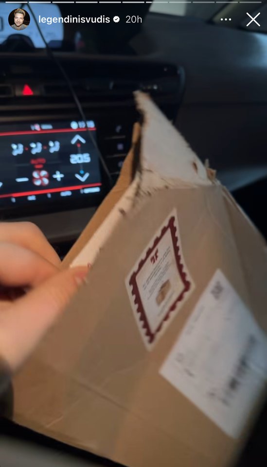 Socialiniame tinkle „Instagram“ A. Martinėnas-Vudis parodė, kaip atrodė jo siunta, atsiimta iš paštomato. Kaip matyti vaizdo įraše, siuntos pakuotės viršus buvo akivaizdžiai praplėštas.