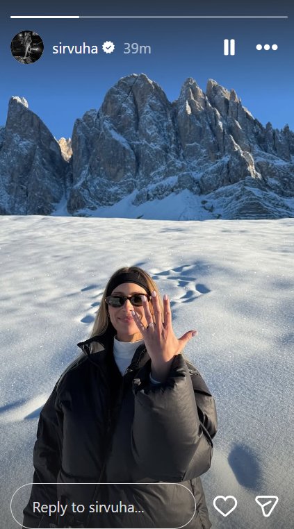 Užfiksuotoje akimirkoje matosi mylimoji Justė, o ant jos piršto puikuojasi žiedas, kurį ji rodo tiesiai į kamerą.