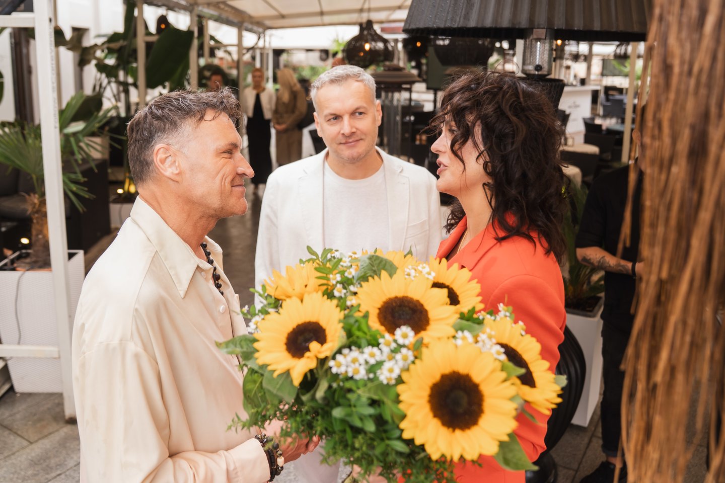 Dar viena Žilvino Grigaičio staigmena draugams – tai specialiai jam iš Belgijos pristatyta karščiausia rudens naujiena – šokolado butiko „Leonidas“ šokoladiniai grybukai, pagardinti riešutais. „Kaip jau minėjau, pradedu naują gyvenimo ir kūrybos etapą, su naujais draugais ir partneriais. Dėkoju tiems, kurie visada yra šalia, kai man sunku ar kai reikia palaikomojo žodžio. Tikiu, kad man viskas dar priešakyje ir tie 55-eri – tai tik gražus skaičius. Žinau, dar mylėsiu ir būsiu mylimas, kaip ir žinau, kad dar ne kartą apkeliausiu pasaulį. Linkiu ir kitiems drąsos būti savimi. Ir nebijoti spalvų tiek gyvenime, tiek aprangoje ar interjere“, – tostą sakė Ž. Grigaitis.